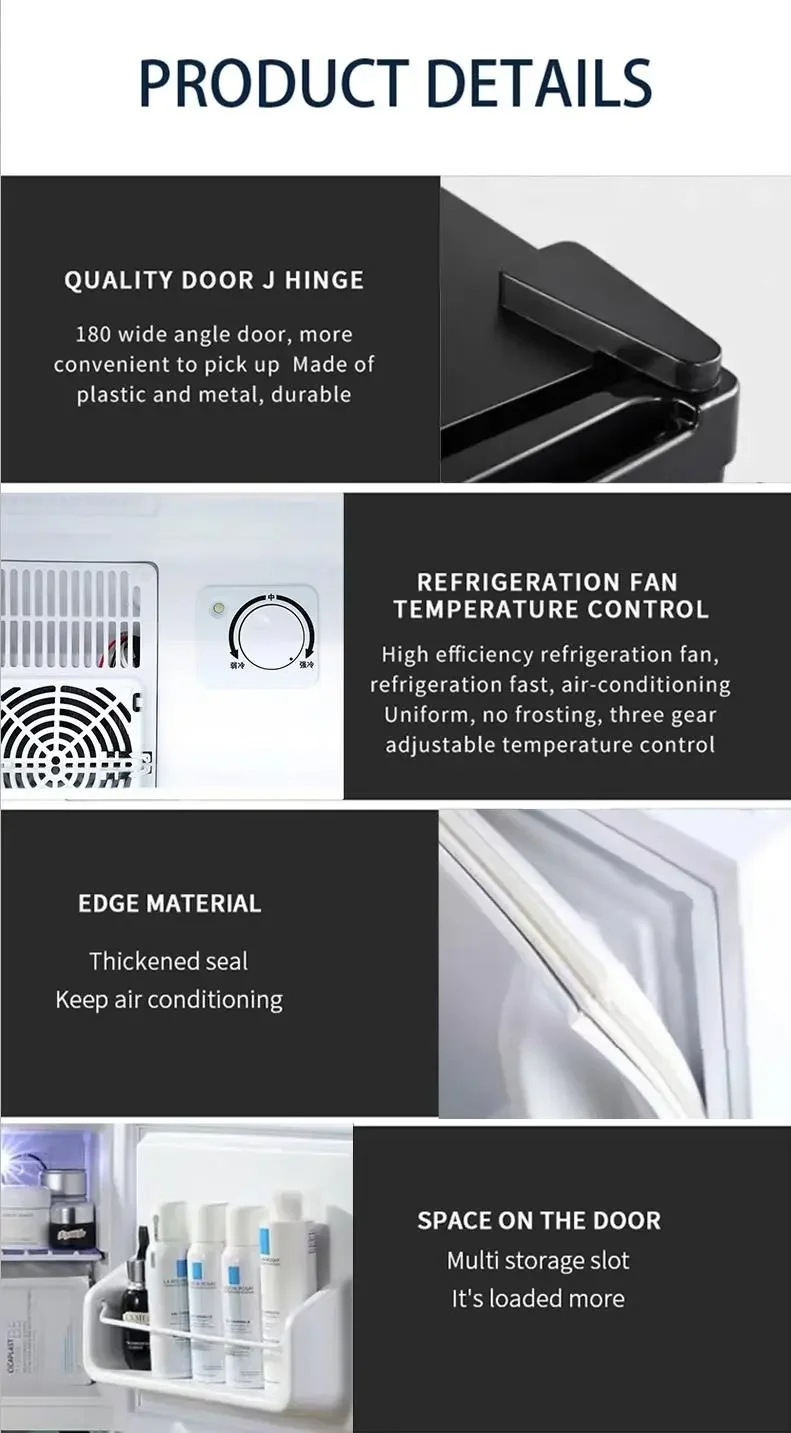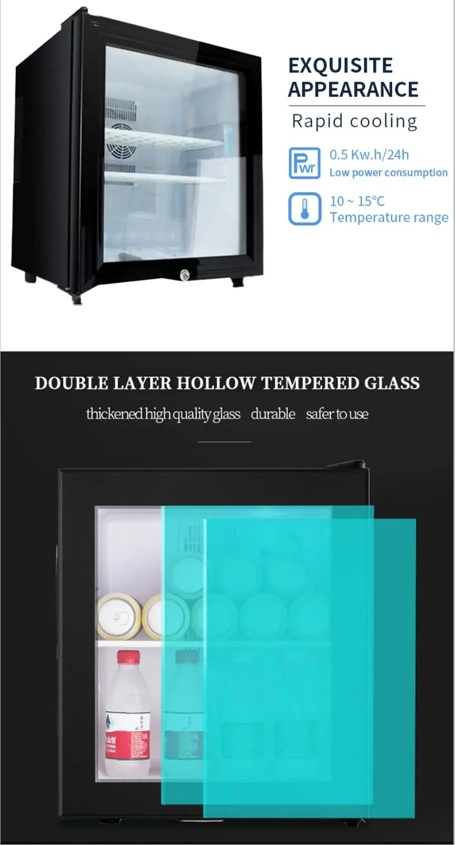 glass door refrigerators;Fast cooling, energy-saving bass;Suitable for hotel rooms, dormitory apartments, offices and other places;40L capacity just meets the demand